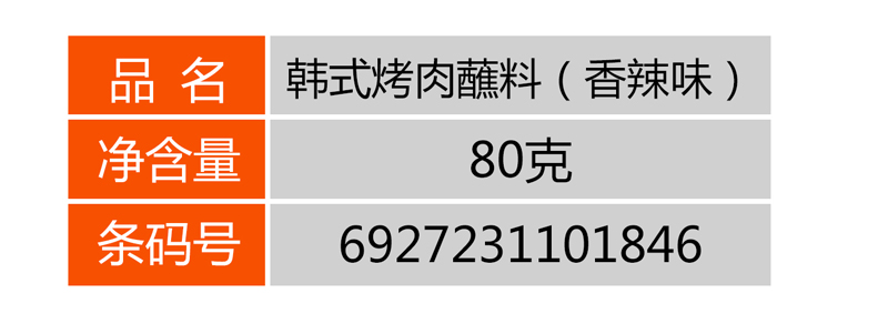 韓式烤肉蘸料(香辣味) 首頁 > 產(chǎn)品展示 > 燒烤系列 > 韓式烤肉蘸料(香辣味)