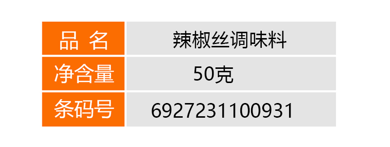 辣椒絲調味料 首頁 > 產品展示 > 原材料分裝系列 > 辣椒絲調味料