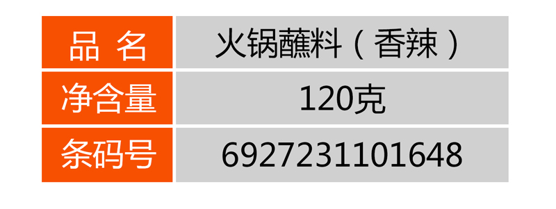 火鍋蘸料(香辣) 首頁 > 產(chǎn)品展示 > 火鍋系列 > 火鍋蘸料(香辣)