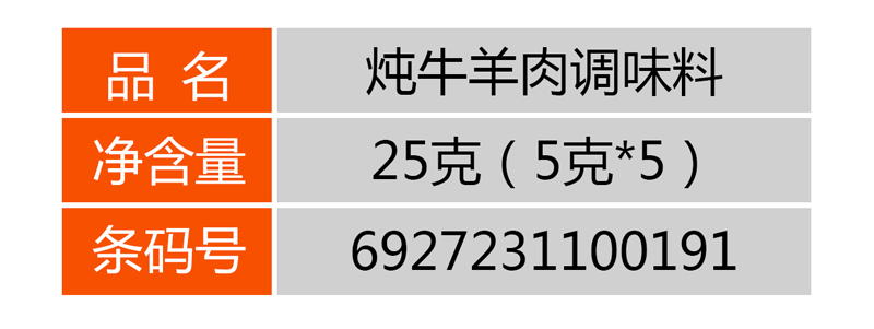 燉牛羊肉調味料 首頁 > 產品展示 > 燉料系列 > 燉牛羊肉調味料