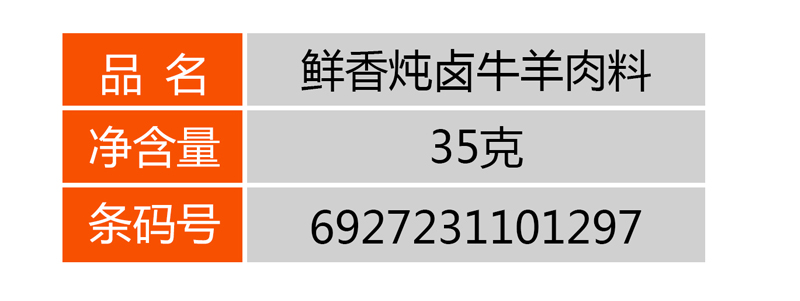 鮮香燉鹵牛羊肉料 首頁 > 產品展示 > 燉料系列 > 鮮香燉鹵牛羊肉料